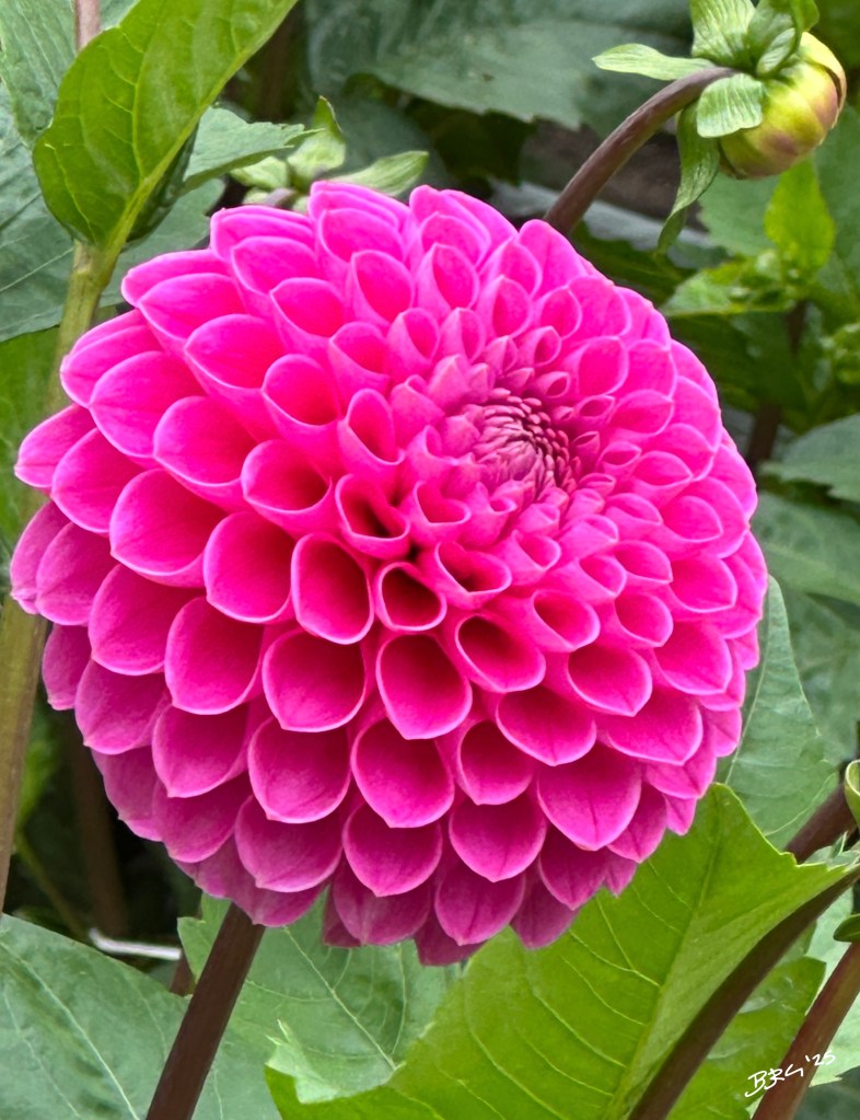 Botanical Gardens/Conservatory of Flowers in San Fran. IMO, the photo would not be complete without the bud in the upper righthand corner. Where does your eye go? (I believe this flower is a Dahlia- Ball Type. Are you a mathematical nerd?)