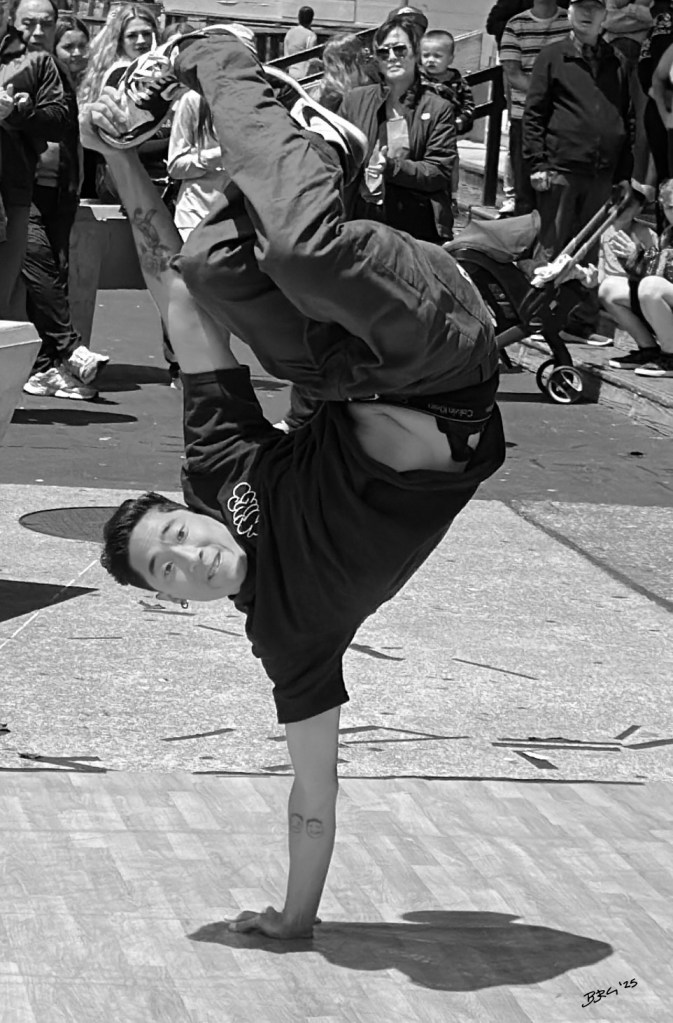 B-boy! In black and white. (80’s kid? IYKYK) At Pier 39.