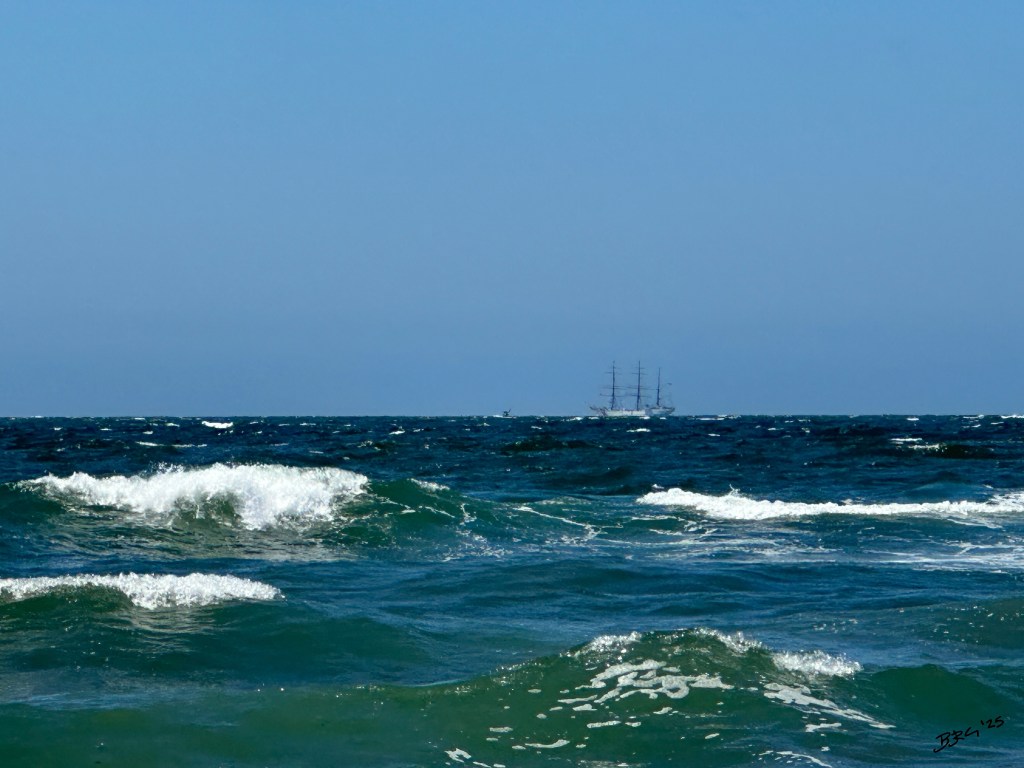 I love when ocean waters reveal so many colors at once. Ship in the distance, a perfect accent. The Pacific.