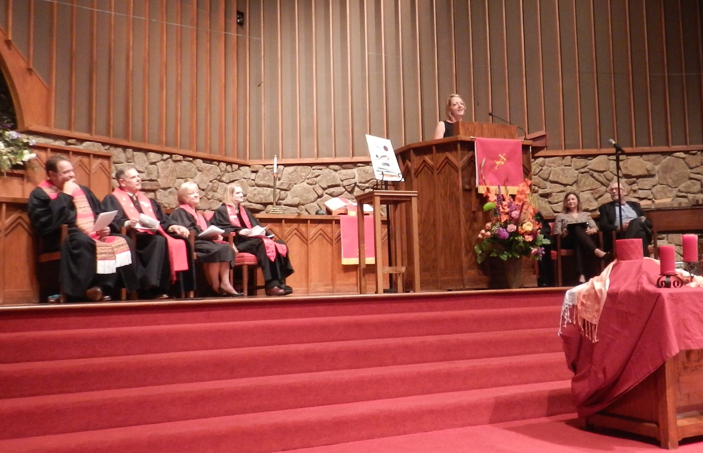 Dear mentor, Rev. Bruce Greer, gives Words of Blessing. His facial expression says it all! He gave the stole he was wearing to me as an ordination gift, and a symbol of passing on the mantle. Needless to say, I was overwhelmed and humbly grateful to receive it.