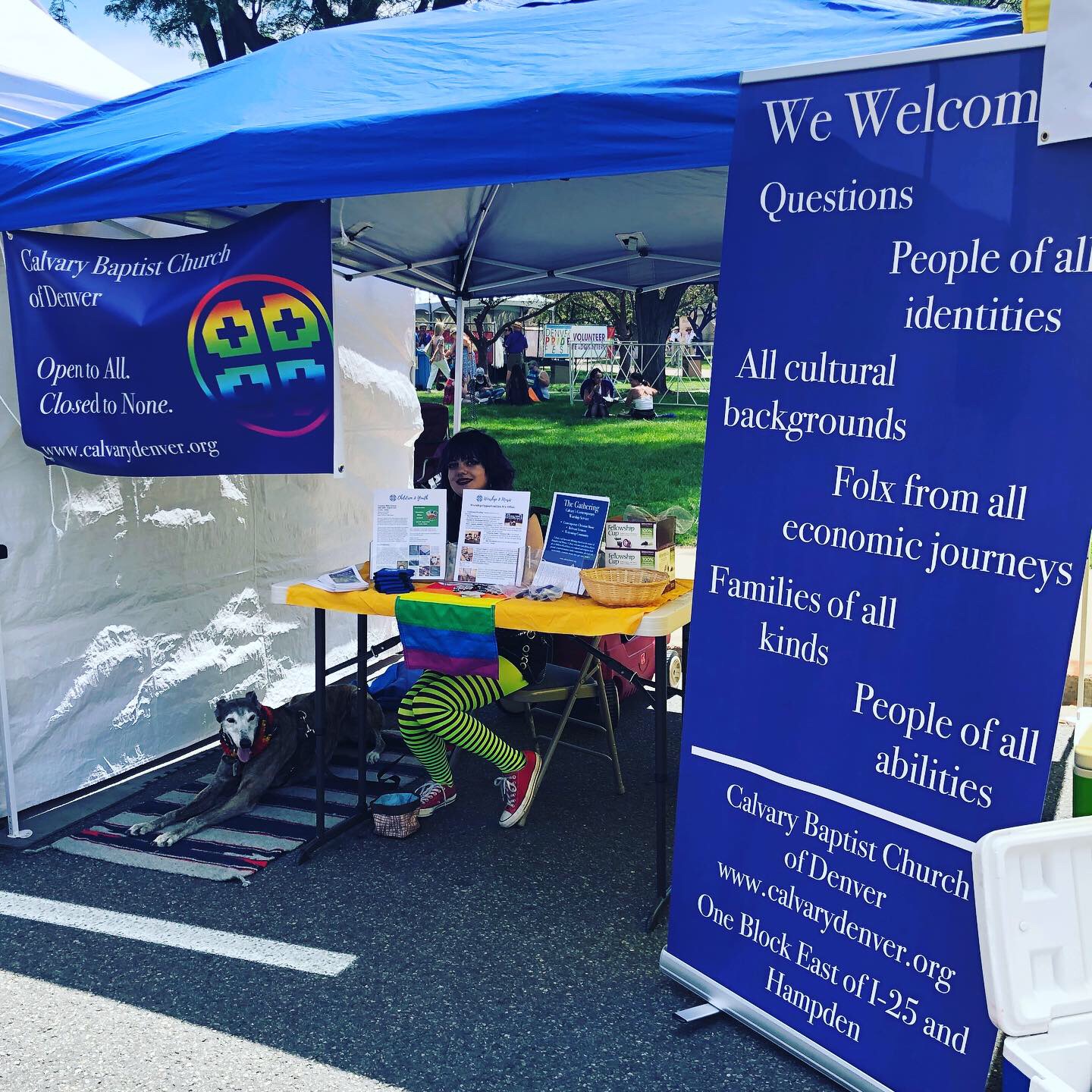 I keep thinking about conversations I had with the beautiful people who stopped by the booth Calvary Baptist Church of Denver hosted at Pride Fest, Denver, 2019. The conversations were brief, but full. I took a shift midday Saturday with my daughter (who identifies as non-binary femme she/they and bisexual), representing CBC, a welcoming and affirming congregation, affiliated with AWAB, the Association of Welcoming and Affirming Baptists. I am a congregant at CBC. I was ordained at CBC. Although I serve in ministry as a chaplain at a hospital, I also serve in ministerial roles on occasion at CBC. I wore one rainbow pin and stole, remembering with care, as best I could, that as a straight ally, I am in a space that doesn’t belong to me. I thought a lot about how difficult things have been recently, particularly for the LGBTQIA community.