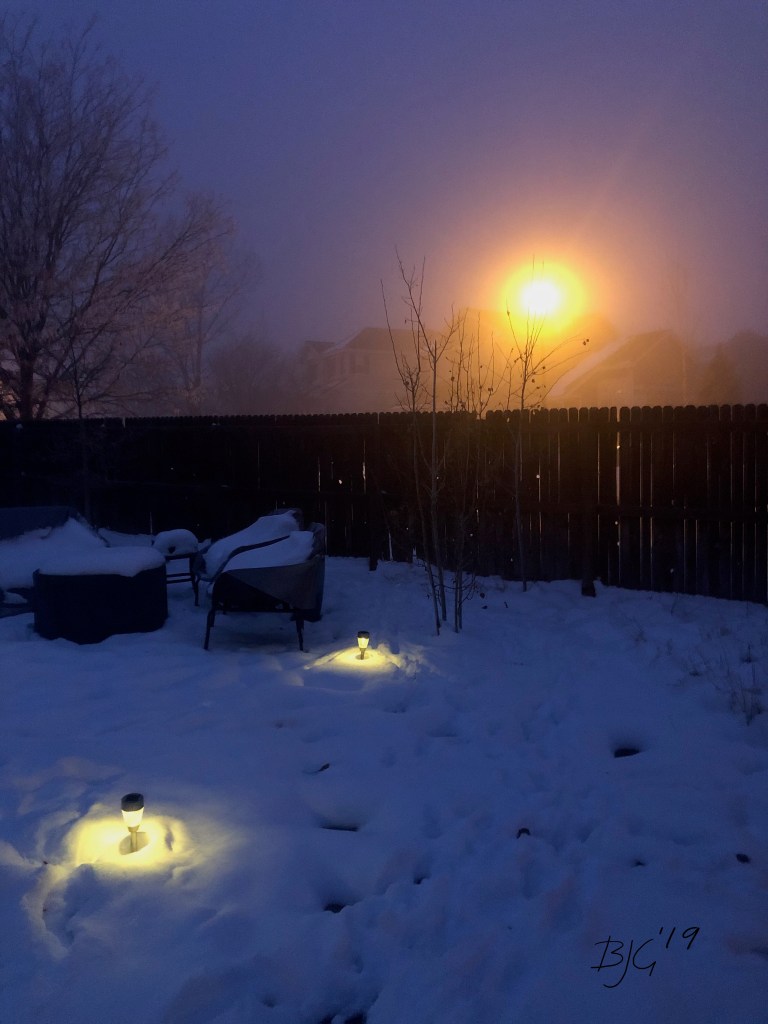 How fog quiets the air Accompanies running to make it quite fun Amplifies paced, snow-crunched steps Tunes the energy of movement in muscle and mind.