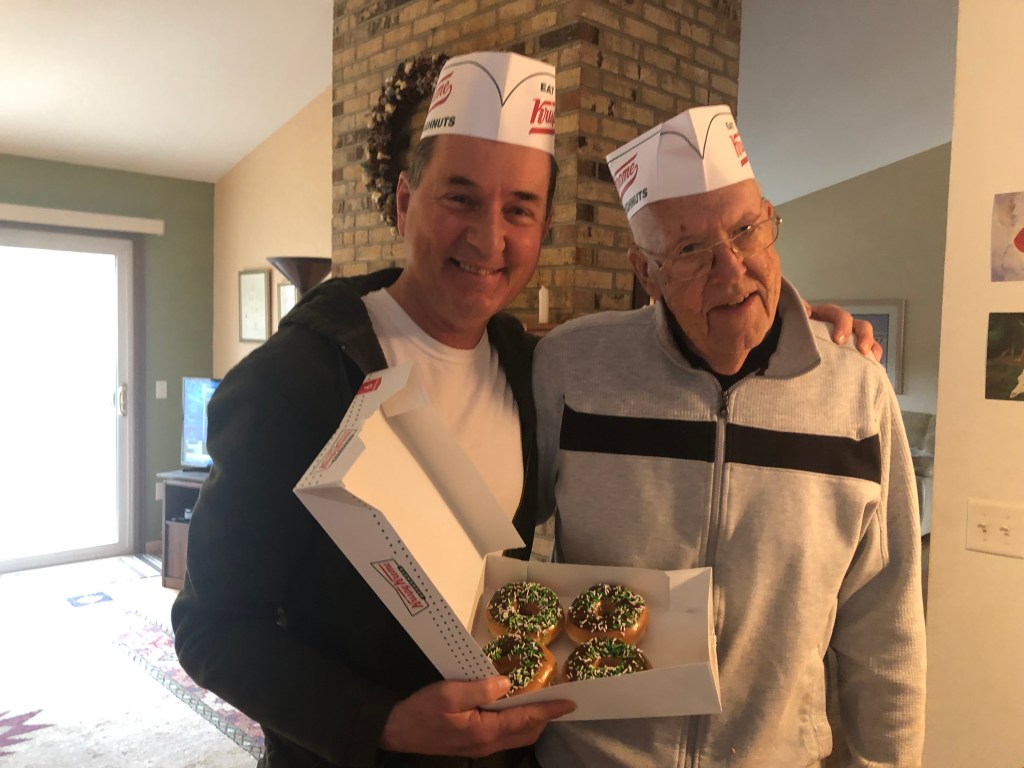 The last photo taken of my dad in his home, on an evening my husband took some St. Patrick’s Day donuts to him, and spent some time in conversation. My dad so treasured his time with JohnE.