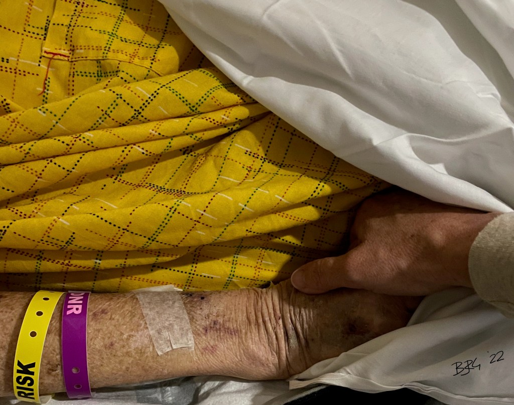 “Dad’s Hand” The photo I took after returning to the hospital after a strong intuition I should go be with him a little longer that day.